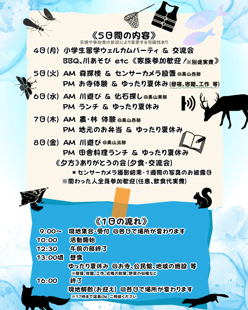 川遊びや森遊び、農・林体験やお寺体験🌲🦌🍆🥒🤿